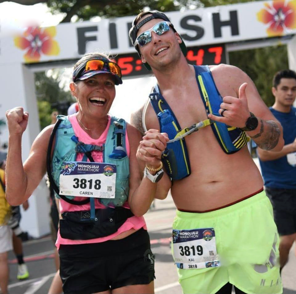 Caren Clark shared the love of running with her family, and ran with her oldest son as he completed his first marathon. Since they ran the Honolulu marathon together, the race had the added benefit of a vacation with beautiful scenery.