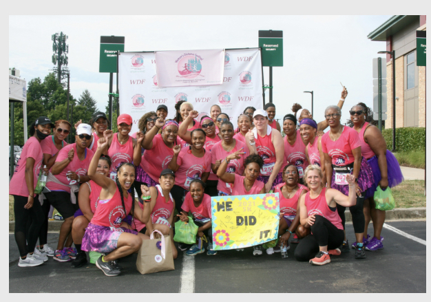 By the time race day was here, we had a total of 43 excited runners on our team! Wearing our pink 2021 WDF tanks/shirts and our purple tutus, we were ready to achieve our goals.