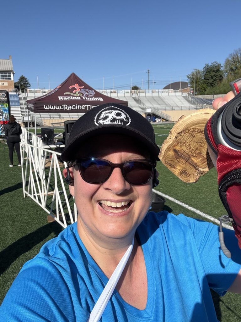 When they advertised that the medals would be “handmade,” I wasn’t sure what to expect. The wooden slice with the carved image certainly wasn’t it! It’s such a neat idea, and a really cool memento of this gorgeous run.