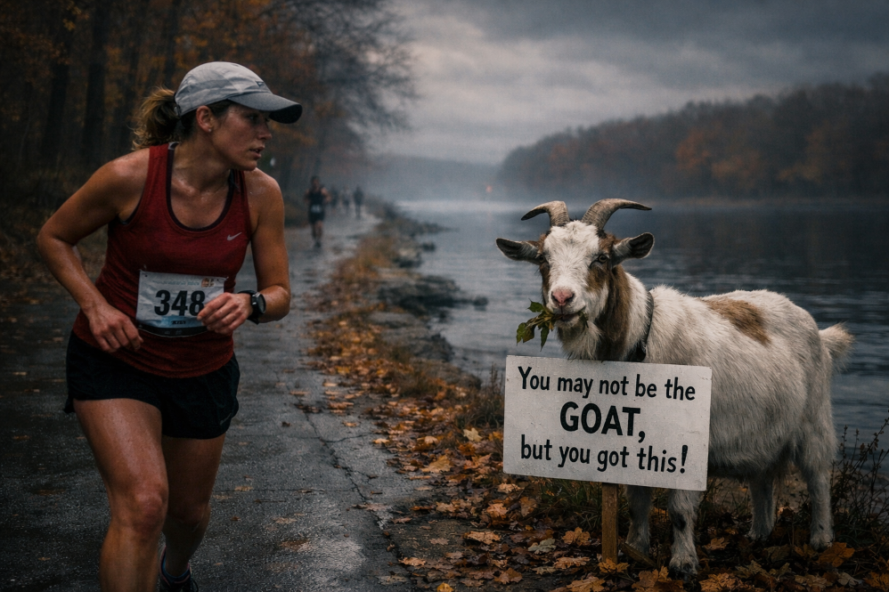 Same aid stations. Same volunteers. Same faces. Same cheerful “You’ve got this!”— and I’m still out here, bargaining with my quads like they’re a separate department that didn’t get the race-day memo.