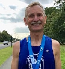 I’m Tim O’Keefe and have been a Steeplechaser for 41 years. My journey in running began in 1967 when I was a sprinter and jumper for my high school track team. After medaling at states in the 200 I moved up to the 400 in college. After 4 years I still could not crack the 50 second mark. In 1975 I began teaching in Rockville and friends invited me to join them for a “jog”. Having gotten in shape make it a whole 5 miles, they enticed me into running a half marathon with them in 1977. They bailed but I ended up running my first race…the National Pike Half Marathon. All on alternate 40 from Boonsboro High School to the the VFW by Fredericktown Mall. The hills and mountains destroyed me but I finished (1:39.23) AND got a medal!