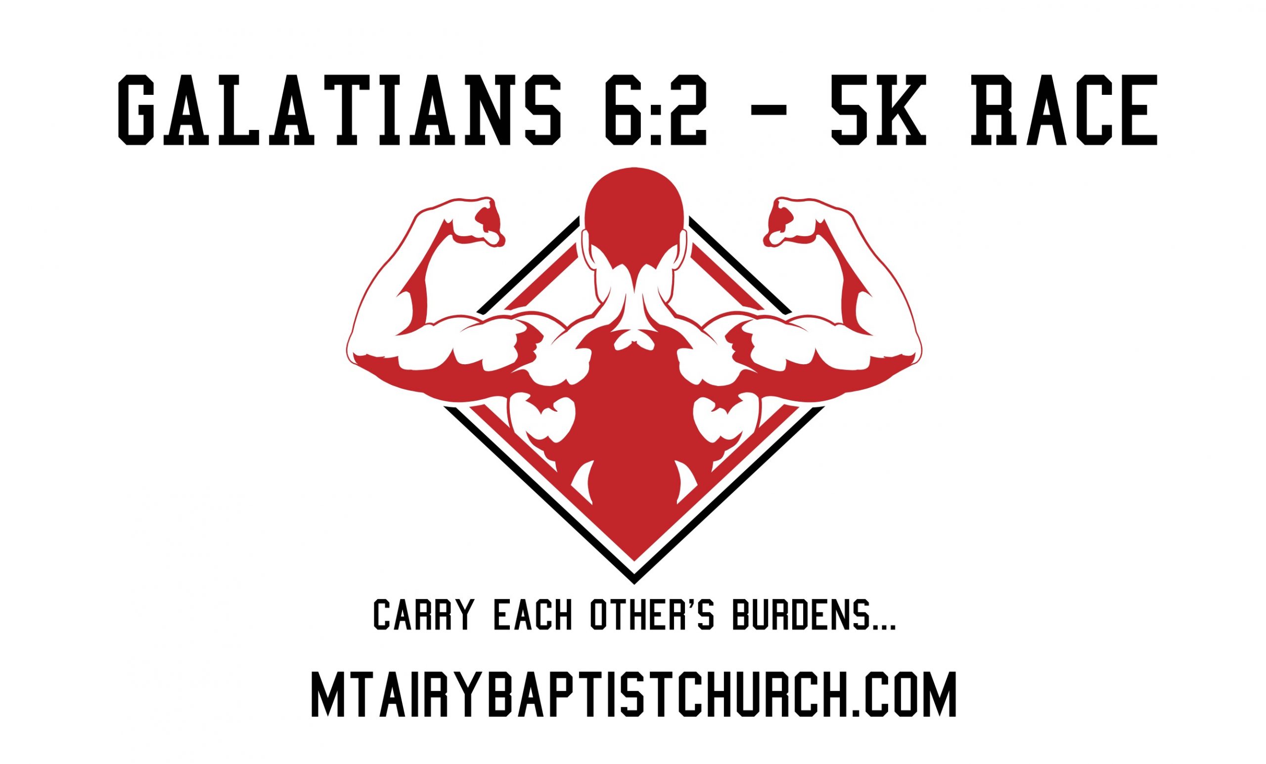 The Galatians 6:2 5K was developed by Mt. Airy Baptist Church and is based on the Bible verse, Galatians 6:2 – “Carry each other’s burdens, and in this way you will fulfill the law of Christ.”  Participants are invited to wear a light-weight backpack with prayer requests of others or a symbol of the prayers of others reminding us of the importance of praying, comforting, and sharing the cares of those around us.